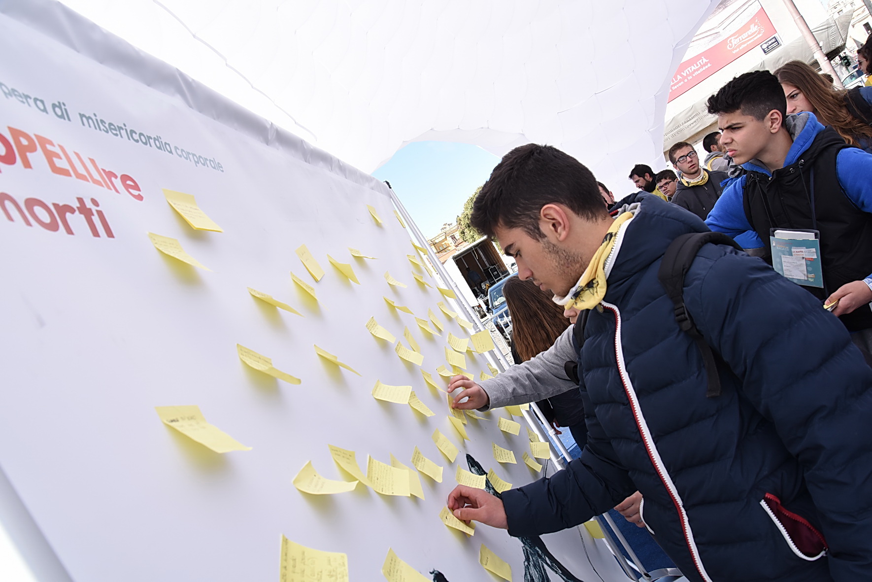 A young person for every slip of paper. Since Friday 22nd tens of thousands have passed by the seven Tents of Mercy set up across seven squares in Rome’s historic centre, each one of which was dedicated to a work of mercy. It was a colourful pilgrimage, sometimes noisy as only youths can be, but at the same time also silent when listening to personal testimonies or during the catecheses to learn more about the works of mercy, trying to understand how to implement them in daily life. They wrote leaving traces of their life. The Jubilee of Boys and Girls, wanted by Pope Francis – the very first in the framework of Jubilee events – acted as a mirror in which 70thousand participants reflected their dreams, problems, expectations and burdens, temporarily releasing their weights. With the timeless questions of every teenager: “Who am I really? Who should I be?” “We read many beautiful personal notes – said Fr Calogero Manganello, deputy-head of the National Service for the Pastoral Care of young people, the Department of the Italian Bishops’ Conference (CEI) responsible for the organization of the event – in the post-its written by young people, describing moments when they were the object of mercy and when they were merciful towards others.