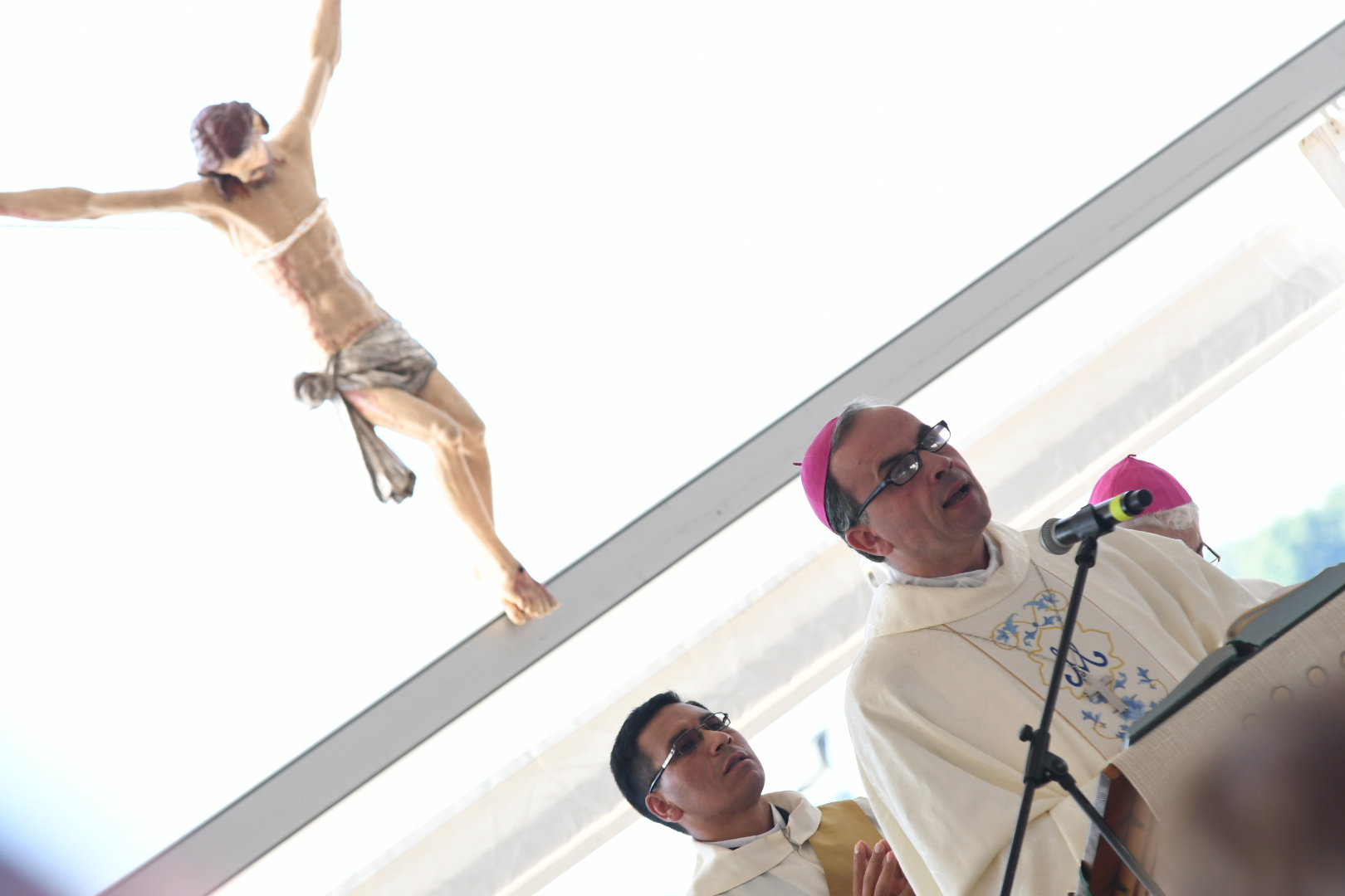 “In questo interminabile mese che ci lasciamo alle spalle mi sono chiesto spesso che cosa ci direbbero quelli che non sono più tra noi. Non ho trovato una risposta puntuale, se non immaginaria. Ho percepito però un grido che sale dalle tante, troppe, vittime di questo evento catastrofico: non siate superficiali!”: è ripartito da quella drammatiche ore, le 3.36, del 24 agosto, monsignor Domenico Pompili, vescovo di Rieti, celebrando questa mattina, ad Amatrice, la messa per le vittime del terremoto in Centro Italia. Un mese esatto dopo la tragedia che ha provocato 297 vittime, molte delle quali proprio nel piccolo centro del reatino. Una celebrazione sentita, partecipata da centinaia di fedeli presenti nella tensostruttura appositamente realizzata. Le immagini del Cristo, povero di Croce, sospeso sopra l’altare e della Madonna, le stesse dei funerali del 30 agosto, sono tornate anche in questa occasione ricreando quel clima di grande compostezza e dignità che già si era respirato il giorno delle esequie, sebbene queste furono precedute da forti polemiche circa il luogo dove dovevano tenersi. Con gli sfollati del terremoto anche tantissimi volontari e operatori della Protezione civile, dell’Esercito e delle tante altre Forze presenti ad Amatrice e Accumoli che dal 24 agosto, sono fedeli compagni di viaggio della gente di qui.