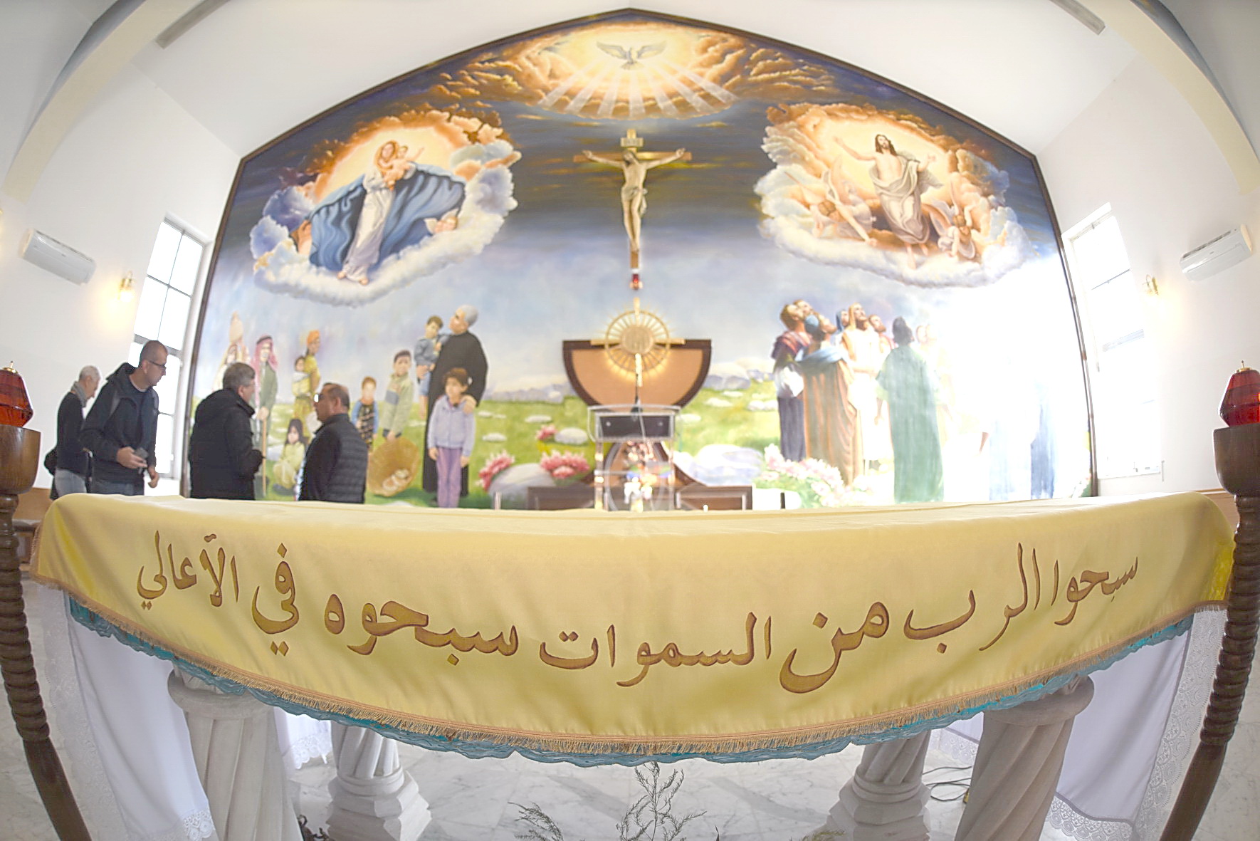 Malaak’s tunic. Her face, her large, green-blue eyes framed under her red bangs, is depicted in the large fresco behind the altar of the church of Fr Hani, along with those of children from other Countries. “It was Don Orione’s dream – the parish told a group of journalists members of FISC – the Federation representing diocesan weeklies -, who travelled to Zarqa under the Fisc-8×1000 “Without borders” program –shared by the Saint when he was a young seminarian. Faced with the risk of having to shut down his oratory in Tortona, Don Orione prayed to the Holy Virgin not to abandon him, to be saved with his young orphans. That same night, the Holy Virgin appeared in his dream with a blue mantle extending over the multi-coloured youths. Mary’s protection, yesterday as today.” Father Hani is sure: young Malaak now rests under Mary’s mantle. “The fresco was painted by an Iraqi refugee from Mosul – the parish priest recalled -. While finishing his painting he was informed that his visa-request for Australia had been accepted. Before leaving for Sidney, he decided to complete the fresco depicting the story of young Malaak on the coloured tunic.”
