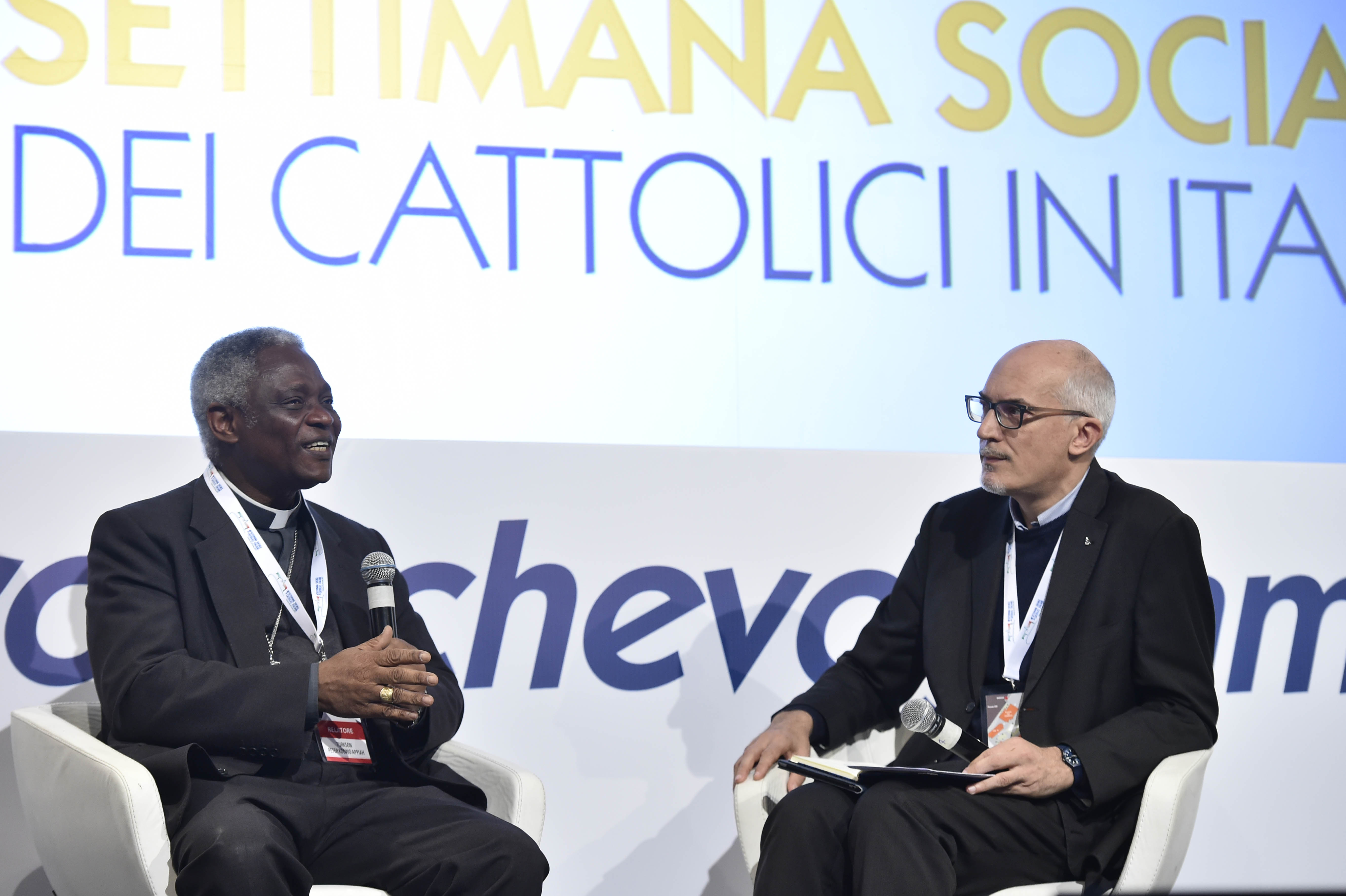 Il successivo dialogo tra il card. Peter Kodwo Appiah Turkson, prefetto del Dicastero per il Servizio dello Sviluppo Umano Integrale, e il gesuita Francesco Occhetta ha riportato il dibattito al prezioso contributo del magistero di papa Francesco dopo Laudato si’. Sullo sfondo le preoccupazioni per i cambiamenti in atto nel mondo del lavoro. Se è vero che la corruzione offusca le coscienze e che il lavoro ha a che fare con la dignità umana, la Chiesa non si tira indietro dell’educare e nel dare l’esempio perché il lavoro sia riconosciuto anche nei propri ambiti.