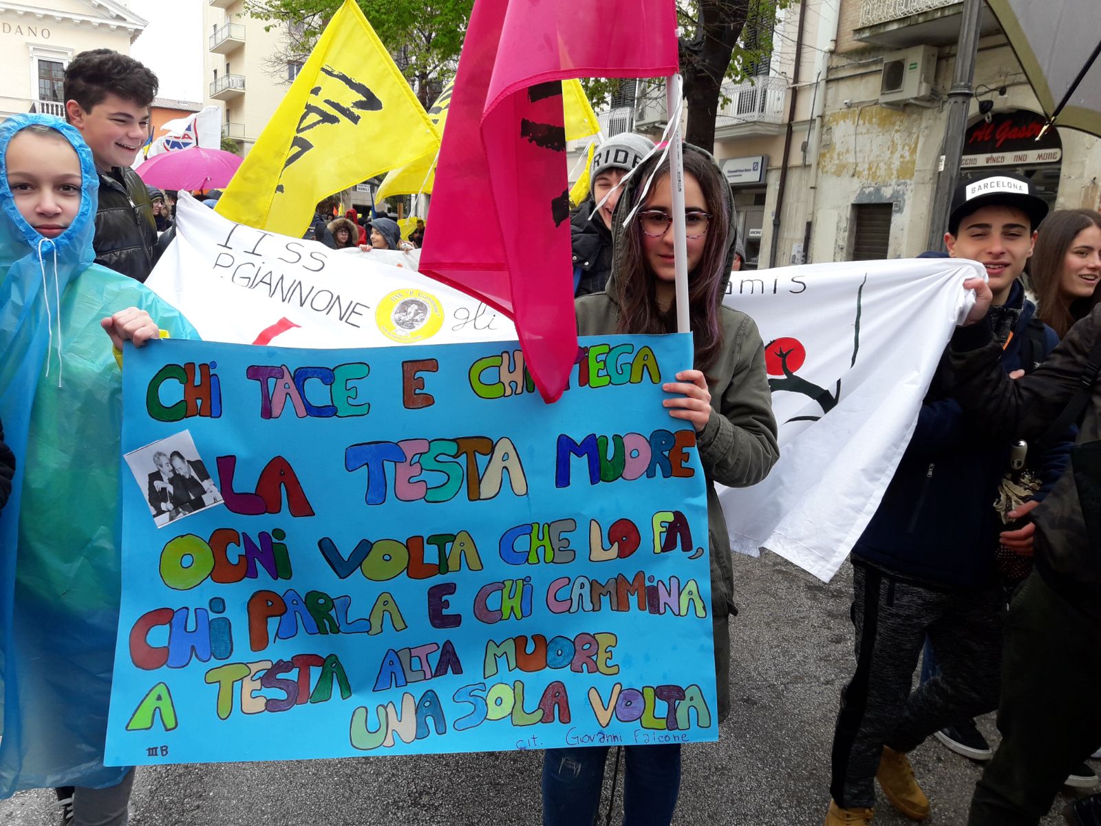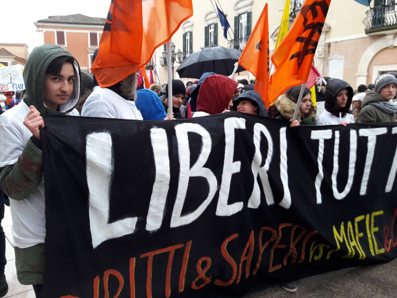 Una prima giornata di primavera sotto la pioggia gelida non ha spaventato le oltre 40mila persone giunte oggi a Foggia, per dimostrare la voglia di lottare e impegnarsi contro le mafie. Sono le forze vive della società pugliese: giovani delle scuole, associazioni cattoliche e laiche, scout, sindacati, migranti, arrivati con 270 pullman da tutta la regione. Foggia è la seconda provincia in Italia, dopo Napoli, dove ancora si spara e si muore a causa della criminalità organizzata. I partecipanti hanno esposto striscioni (“Soli si muore”, “La mafia impedisce di sognare”, “Noi siamo qui, tu da che parte stai?”), sventolato bandiere, cantato a gran voce e ascoltato i nomi delle 950 vittime di mafia, pronunciati uno per uno, davanti ad una folta rappresentanza dei familiari. Celebrazioni simili si sono svolte in 4mila luoghi sparsi in Italia, Europa e America Latina, durante la XXIII Giornata nazionale della memoria e dell’impegno in ricordo delle vittime innocenti delle mafie, organizzata come ogni anno dall’associazione Libera. Titolo: “Terra, solchi di verità e giustizia”. Li ha accolti una città attonita e un po’ stordita dalla novità, con la gente che li osservava sfilare dai balconi degli alti palazzi del centro e poi tutti in piazza Cavour davanti al grande palco allestito per l’occasione. Per permettere la manifestazione l’arcidiocesi di Foggia ha perfino anticipato di un giorno la tradizionale processione mariana dell’Iconavetere, che doveva svolgersi oggi.