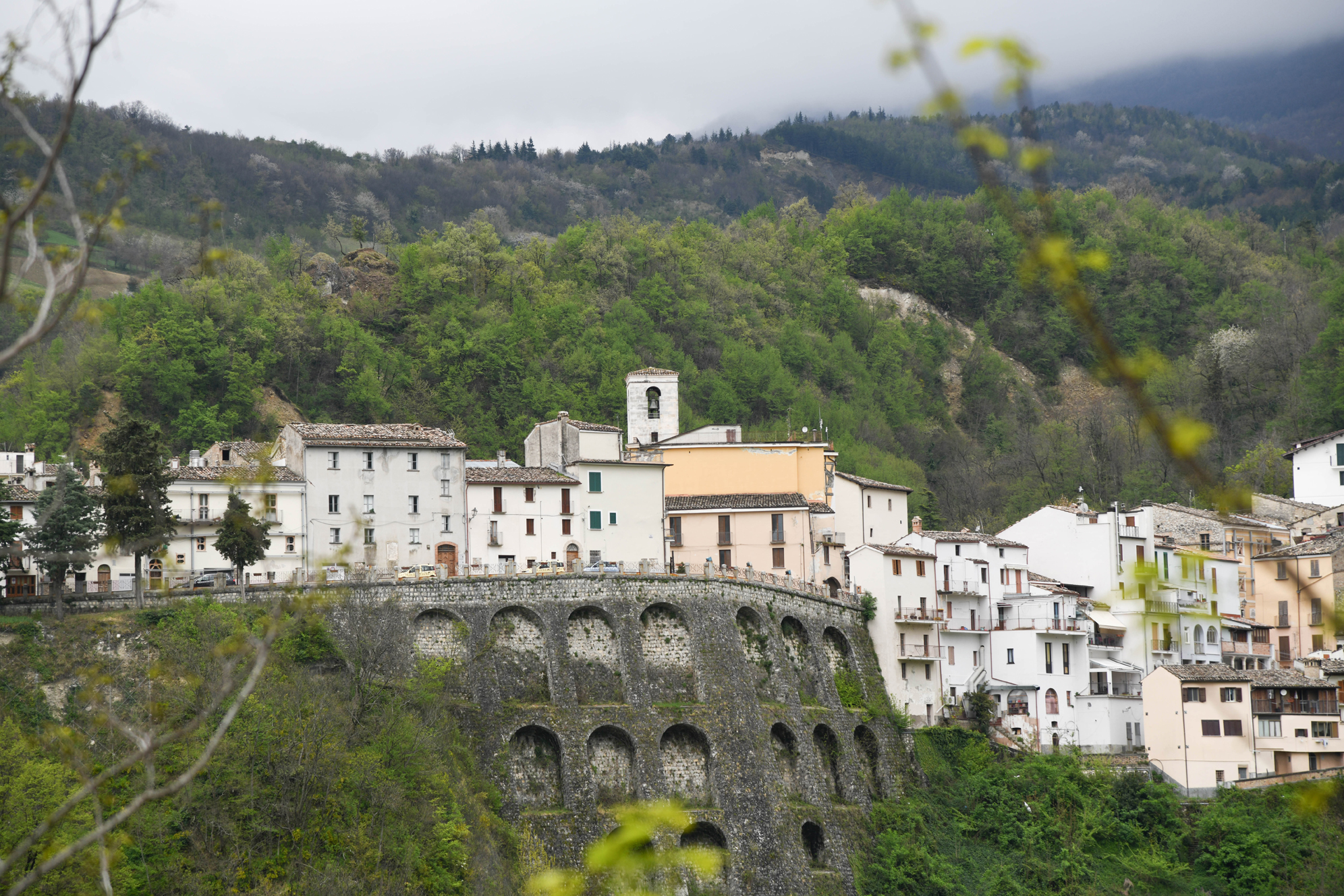 Le crepe del terremoto non si nascondono facilmente in questa località che dista solo pochi chilometri da Rigopiano, scenario di un’altra tragedia abruzzese, ed anche la dedica dell’artista a tutte le vittime di questi dieci anni ne è testimonianza.