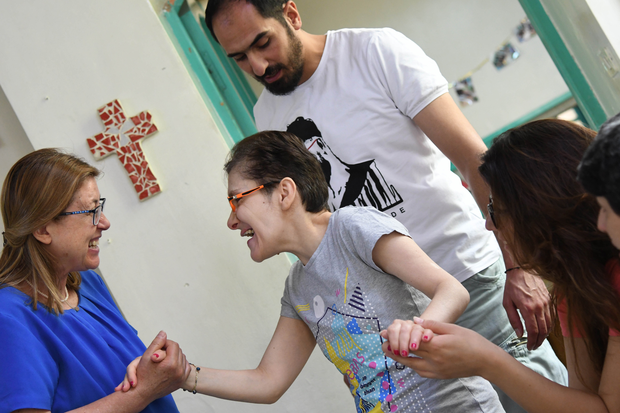Ricordi di guerra. “Sui muri di casa non abbiamo segni visibili della guerra, ma certo che nella mente e nei cuori di tutti noi ce ne sono di invisibili”, spiega la responsabile di Al Safina, la signora Ghada Touma mentre chiama gli 8 ospiti della casa, aperta nel 1995. I primi ad arrivare sono Randa, Gaby, Karim e Imad. Tutti con gravi disabilità fisiche ed intellettive. Con loro due operatori, Ashraf e Fadi, coordinatori rispettivamente del foyer e dei laboratori. Riaffiorano i ricordi degli anni più duri della guerra, quelli delle bombe e dei mortai: “Da aprile dello scorso anno la situazione è decisamente migliorata.