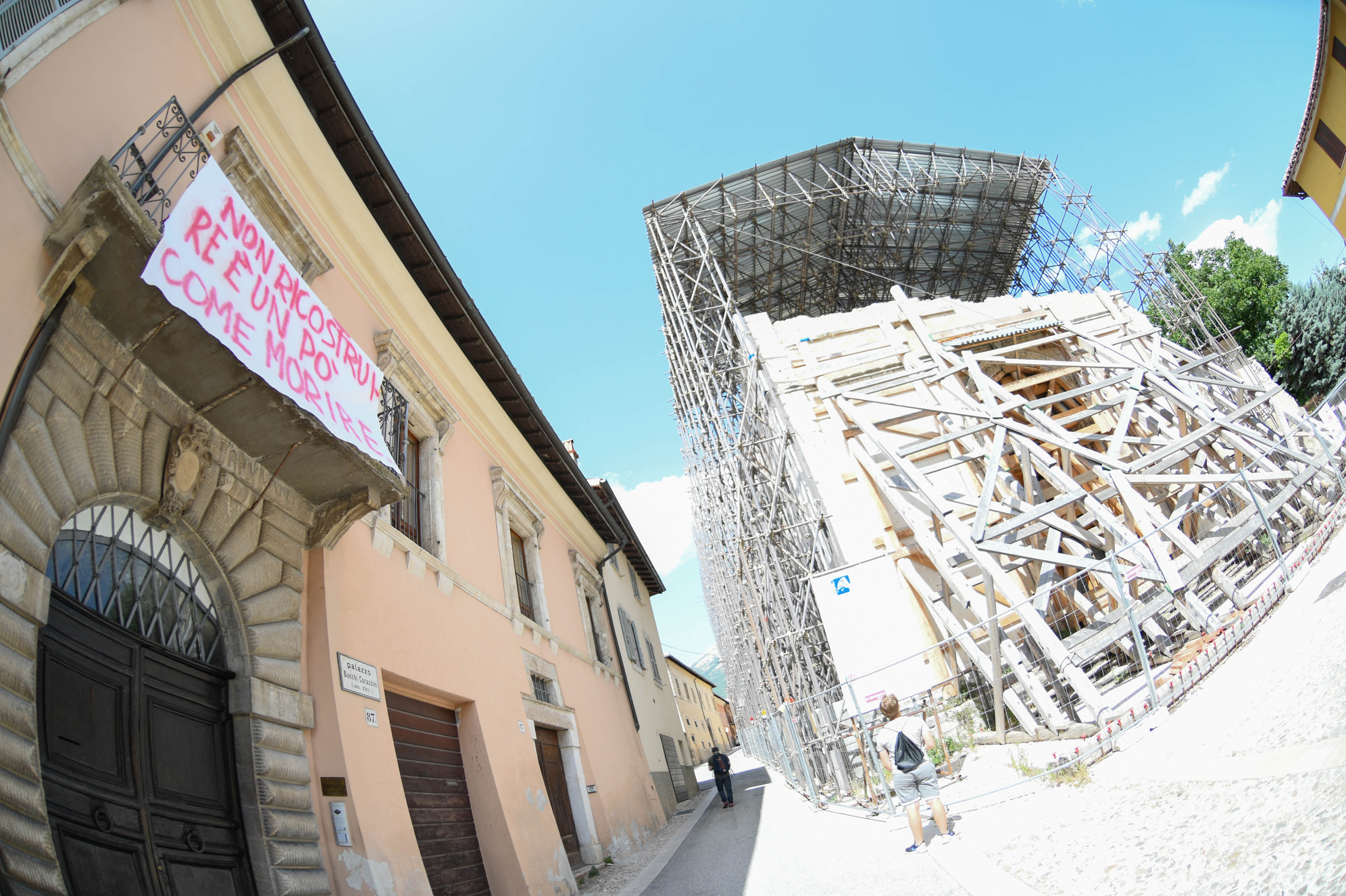 A tre anni dalle prime scosse del terremoto del 24 agosto che colpirono il Centro Italia, a Norcia e nei centri della Valnerina parlano solo i lenzuoli che pendono dai balconi e dalle finestre. “Aprite i cantieri”, “Vivere=ricostruire”, “unica grande opera, ricostruire il Centro Italia terremotato”, “la ricostruzione non parte, presente e futuro rubato”. Una protesta vibrante ma silenziosa che non risparmia niente e nessuno: “tre governi, tre commissari, solo promesse. Vergogna”.