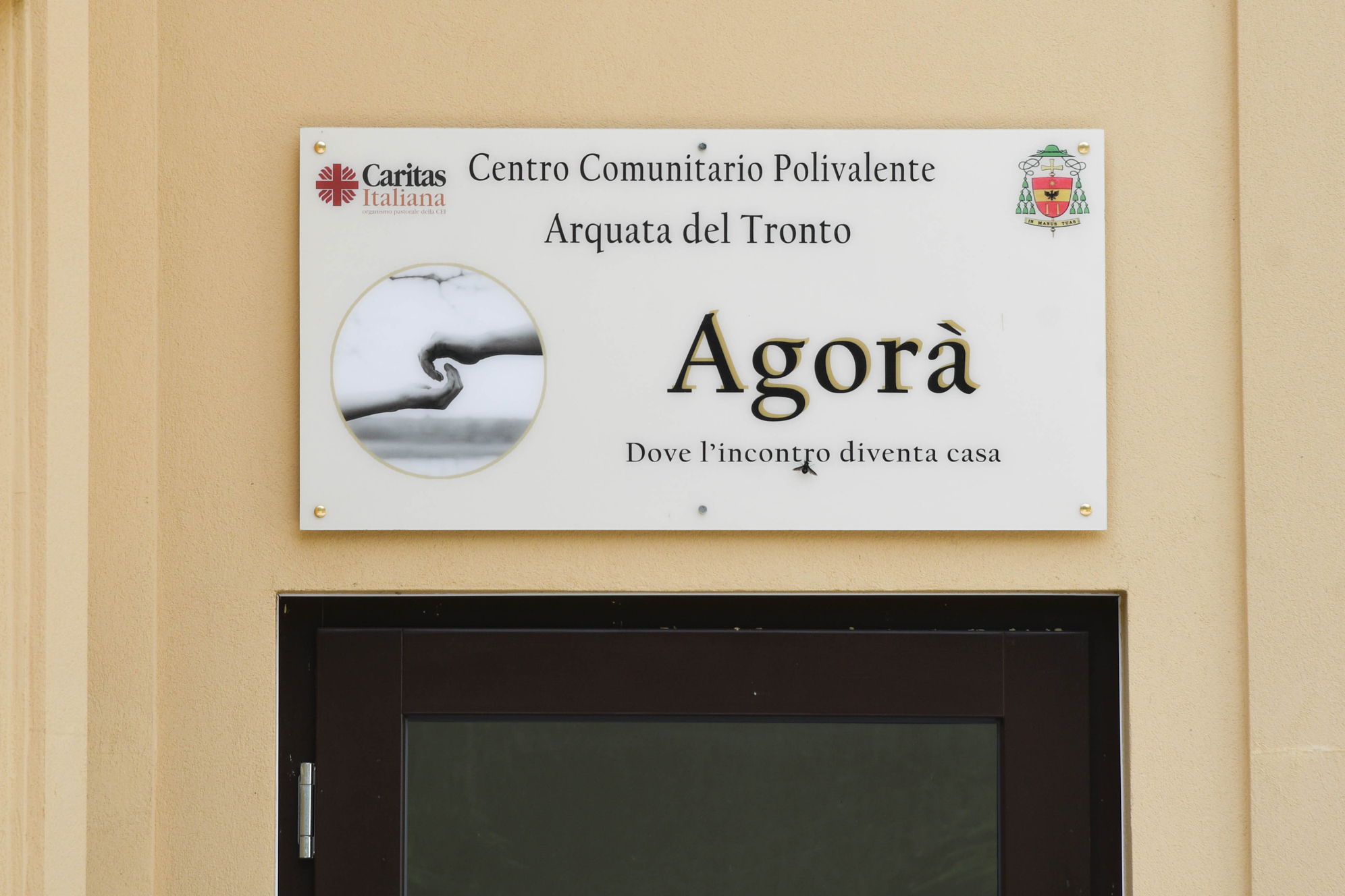 Segno della voglia di ricominciare, inizio di una ricostruzione umana e spirituale. Si chiama “Agorà”, parola greca che significa ‘piazza’. Sulla targa posta al suo ingresso si legge “Dove l’incontro diventa casa”, vicino la scritta l’immagine di due mani che si cercano per aiutarsi, in secondo piano, quasi sfocata, la crepa di un muro. È il Centro comunitario polivalente di Arquata del Tronto, sito nella frazione di Borgo di Arquata, vicino alla nuova scuola, realizzato con il contributo di Caritas Italiana, di Caritas Europa e di altre Caritas del mondo come Vietnam e Iraq e inaugurato nell’ottobre del 2017, poco più di un anno dopo il terremoto del 24 agosto che devastò il Centro Italia.