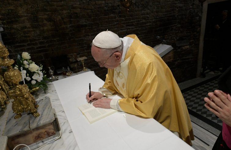Dieci minuti in preghiera, da solo, in silenzio, come un pellegrino qualsiasi, seduto davanti alla Statua della Madonna e all’altare che celebra il Mistero dell’Annunciazione. È il primo atto della visita del Papa a Loreto, che per un giorno è diventata “capitale mondiale” dei giovani grazie alla firma dell’esortazione apostolica, dal titolo “Christus vivit”, a […]