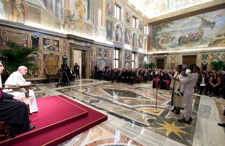 Ero vicino a una famiglia di rifugiati eritrei – papà, mamma e il piccolo Adonai (che in ebraico significa “Mio Signore”) -, mentre ascoltavo le parole del Papa ai partecipanti al VI Forum internazionale “Migrazioni e pace”, questa mattina (21 febbraio), nella sala Clementina. Il loro sguardo commosso, ma soprattutto la loro storia di migrazione […]