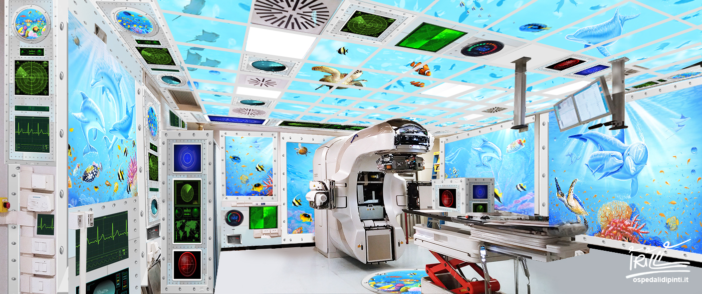 Attraversare un ambiente marino popolato di pesci e altri animali coloratissimi alla guida di un sottomarino come il Capitano Nemo fino a raggiungere l’approdo per effettuare una importante terapia. È questo il luogo dominato dall’azzurro, in via di realizzazione, dedicato ai pazienti pediatrici affetti da malattie oncologiche che devono sopporsi a cicli di cure presso il Centro di radioterapia oncologica Gemelli Art (Advanced Radiation Therapy) del Policlinico Universitario A. Gemelli di Roma. Ed è questo l’obiettivo del Progetto Acquarius che, attraverso una campagna di raccolta fondi, http://donaora.policlinicogemelli.it/gemelli-art/, si vuole realizzare presso il Policlinico Gemelli per offrire un servizio sempre più a misura dei piccoli pazienti. “Gemelli Art – si legge in una nota – dispone già di una sala di attesa, un’area ‘magica’ dove i piccoli pazienti oncologici, in attesa di essere sottoposti a trattamento radioterapico, possono giocare in un mondo fiabesco grazie ai dipinti raffiguranti un acquario realizzati lungo i corridoi dal pittore Silvio Irilli e vincere la paura delle terapia”.