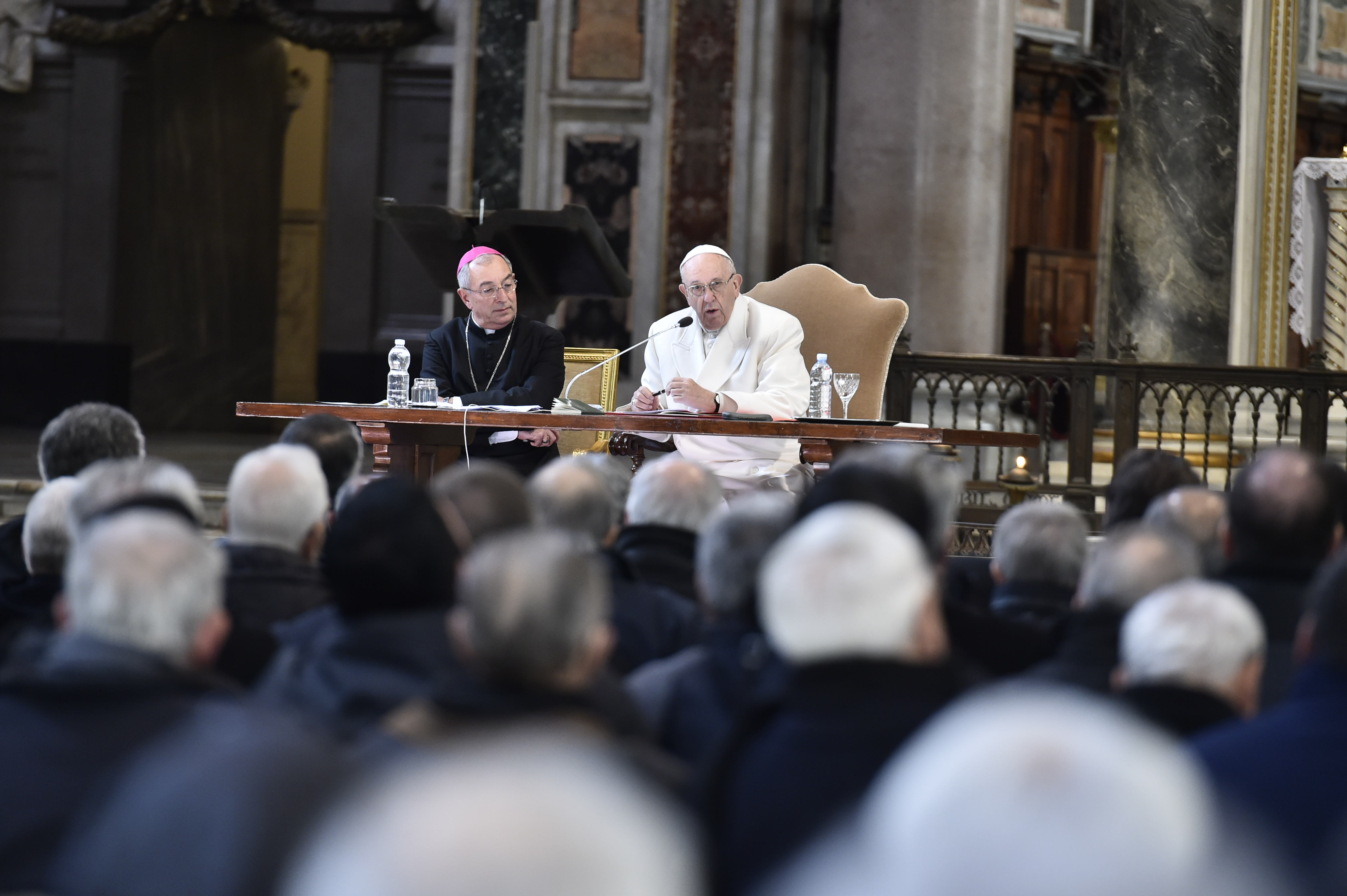 “Ci sono delle tentazioni brutte in questo tempo. Tentazioni che prima uno mai avrebbe pensato di avere. Non c’è da vergognarsi, sono tentazioni: il problema è del tentatore, non è nostro”. Così Papa Francesco ha risposto alla seconda domanda sulla “crisi di mezz’età” per i sacerdoti posta dai parroci della diocesi di Roma durante l’incontro che si è svolto giovedì 15 febbraio, nella basilica di San Giovanni in Laterano. Il testo è stato diffuso oggi dalla Sala stampa vaticana. “Non c’è da vergognarsi. Ma bisogna smascherarle subito – ha aggiunto il Papa, parlando delle tentazioni di mezz’età -. Ed è anche il tempo delle ragazzate: quando il prete incomincia a fare delle ragazzate. Sono il germoglio della doppia vita. Bisogna prenderle subito e anche con senso dell’umorismo: ‘Guarda, io che avevo creduto di avere dato la mia vita totalmente al Signore, ma guarda, che brutta figura faccio!’”. Francesco considera queste tentazioni opera de “le démon de midi”, il “demone di mezzogiorno”. “Noi in Argentina lo chiamiamo ‘el cuarentazo’. A quaranta, tra quaranta e cinquanta anni, ti viene questo. Alcuni ho sentito che lo chiamano ‘adesso o mai più’”. Quando si manifesta questo demone, quando si perde l’entusiasmo di seguire il Signore, il rischio, secondo Francesco, è che rimanga “l’apparenza”. Quindi, il suggerimento è di “cercare aiuto subito”. “Con il Signore dire la verità, che sei un po’ deluso perché quell’entusiasmo se n’è andato. Ma c’è la preghiera di donazione. È un momento aspro, ma è un momento liberatorio: quello che è passato, è passato; adesso c’è un’altra età, un altro momento della mia vita sacerdotale. E con la mia guida spirituale devo andare avanti”. Quindi, in questa fase, Francesco spiega che “il tempo che rimane, di vita, è per una migliore donazione di sé stessi. È il tempo dei figli, di vedere crescere i figli. Il tempo di aiutare la parrocchia, la Chiesa, a crescere, è tempo di crescita, dei figli. È tempo che io incominci a diminuire. Il tempo della fecondità, la vera fecondità, non la fecondità finta. È tempo della potatura: loro crescono, io aiuto e io rimango indietro”.