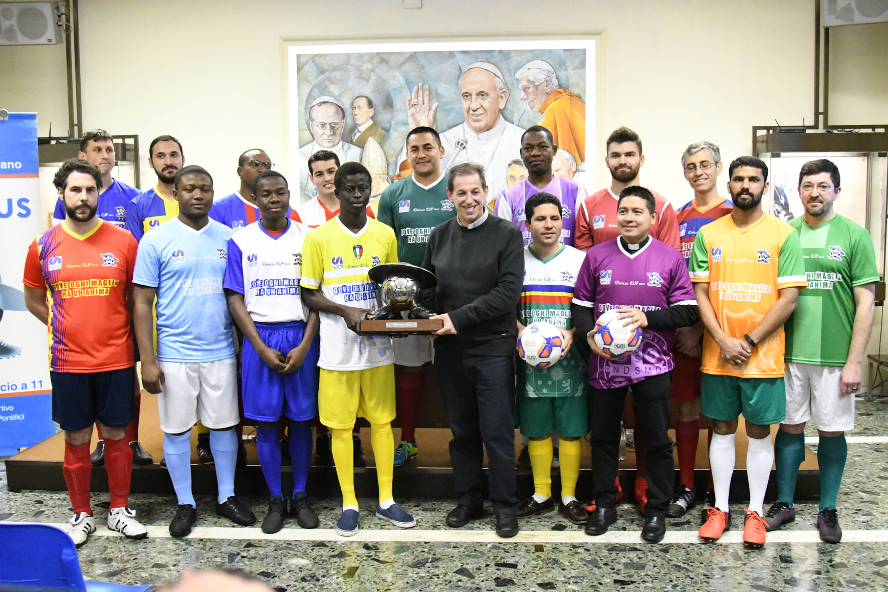 Al via la 12ª edizione della Clericus Cup. Torna infatti da domani a Roma il “Mondiale ecclesiastico” promosso dal Centro sportivo italiano (Csi) con il patrocinio dell’Ufficio nazionale del tempo libero, turismo e sport della Cei, del Dicastero per i laici, la famiglia e la vita e del Pontificio Consiglio della cultura. “Il Csi – spiega il presidente nazionale Vittorio Bosio presentando oggi l’iniziativa presso la sede della Radio Vaticana che ne è media partner – è presente all’interno degli oratori dove, con la pratica sportiva, offre un servizio alla comunità e la possibilità di fare aggregazione e divertimento per tanti giovani”. “Questa coppa ha un significato particolare – prosegue -. Organizziamo un torneo di calcio per i preti e i seminaristi perché siamo convinti che è uno sport universale e che con un pallone in mano si possono dire tante cose. Possiamo parlare diverse lingue ma il linguaggio è comune”. “Siccome voi andrete poi nelle parrocchie e comunità a cui sarete destinati – afferma rivolgendosi ai rappresentanti delle 16 squadre presenti in sala – questo torneo è il punto di partenza per capire quali benefici può portare lo sport ai ragazzi negli oratori e parrocchie”. Di qui l’auspicio che “il messaggio di felicità, gioia divertimento, fratellanza passi dal campo di gioco e arrivi anche nelle comunità che andrete a incontrare nel vostro ministero”. Ricordando la propria esperienza di ragazzo all’oratorio, Bosio assicura: “Il prete che era lì non perdeva tempo, forse la parte migliore dell’educazione che ci ha dato è passato proprio da lì”.