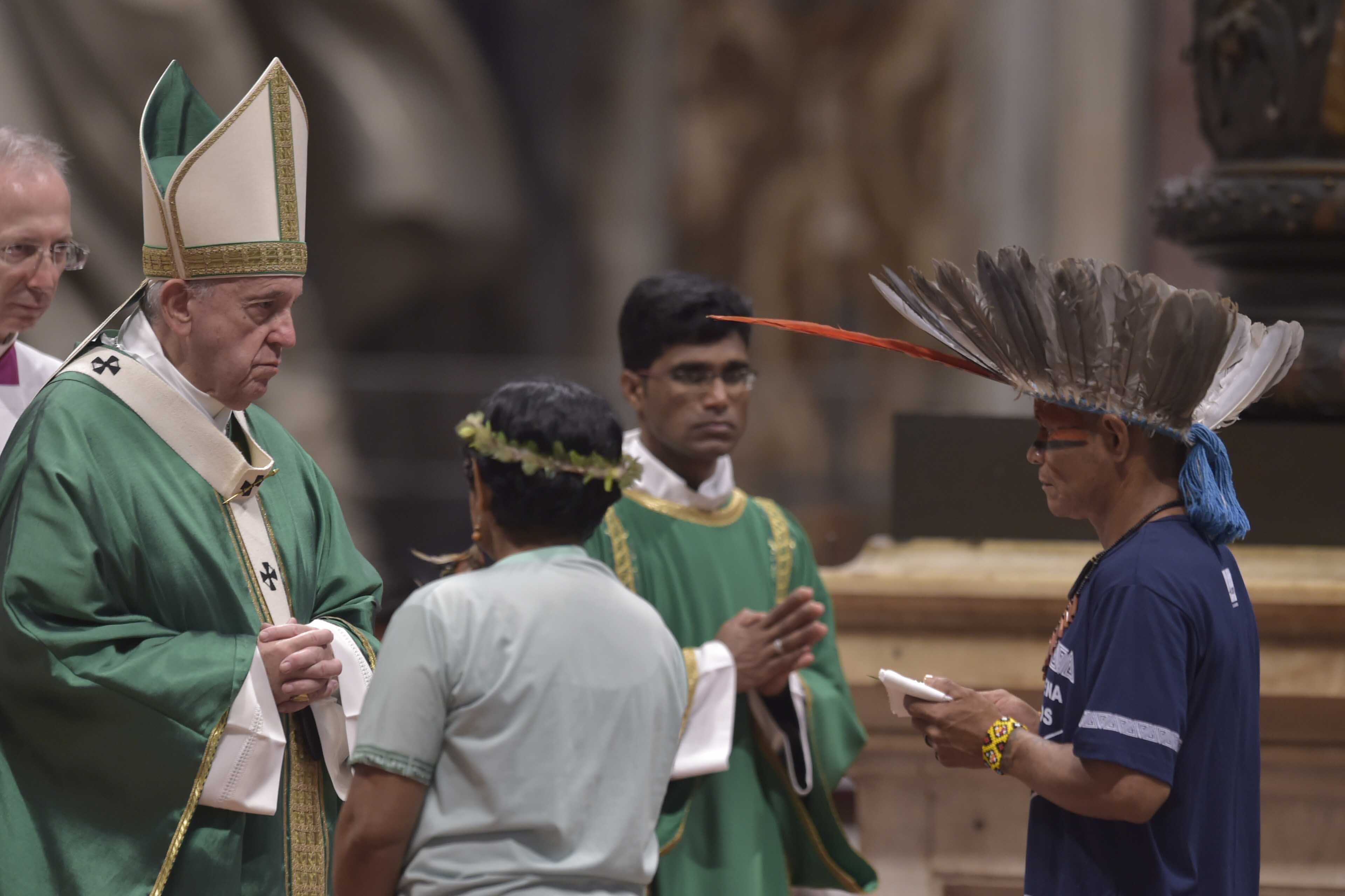 “Se qualcuno viene qua con intenti pragmatici, è un peccatore e si converta”. Lo ha detto il Papa, nel discorso pronunciato a braccio, in spagnolo, durante la prima Congregazione generale del Sinodo per l’Amazzonia. “Non siamo venuti qua per inventare programmi di sviluppo sociale, per tutelare una cultura come fosse un museo, con uno stile non contemplativo, come si fanno le azioni di disboscamento”, il monito di Francesco. “Mi ha fatto tristezza ascoltare qui dentro un commento burlone su queste persone che girano con le piume in testa”, ha rivelato il Papa: “Che differenza c’è tra le piume sulla testa e i copricapi che usano gli officiali dei nostri dicasteri?”, l’obiezione di Francesco, secondo il quale “corriamo il rischio di approcci semplicemente pragmatici, quando al contrario serve contemplazione dei popoli, capacità di ammirazione dei popoli”. “Deforestazione, uniformizzazione e spogliazione: è un programma che non rispetta la poesia dei popoli, la realtà dei popoli, che è sovrana”, la tesi del Papa: “Andiamo a contemplare, a comprendere e a servire i popoli, e lo facciamo percorrendo un cammino sinodale, non una conferenza”.