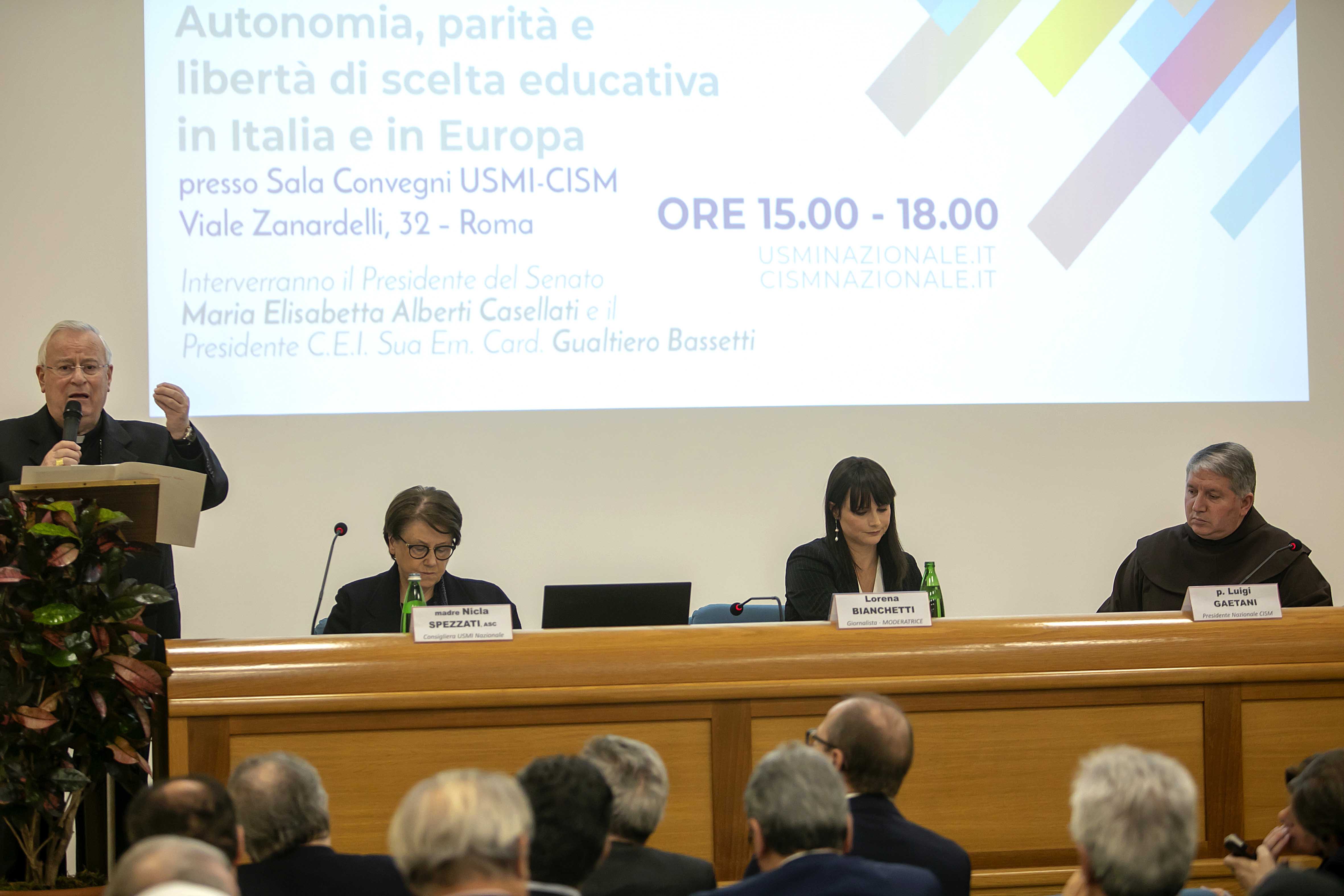 “Nonostante l’impegno profuso dalle realtà ecclesiali nel promuoverle e sostenerle, la vita delle scuole cattoliche non è facile, perché manca in Italia quella vera parità che altri Paesi riescono a garantire tra scuole statali e non statali. Ciò può spiegare, insieme ad altri fattori, il calo progressivo nel numero di scuole cattoliche registrato negli ultimi anni in Italia, e ancor più il calo nel numero degli alunni di queste scuole”. Lo ha detto il card. Gualtiero Bassetti, presidente della Cei e arcivescovo di Perugia-Città della Pieve, intervenendo oggi pomeriggio, a Roma, al seminario “Autonomia, parità e libertà di scelta educativa in Italia e in Europa”, organizzato dall’Unione superiori maggiori d’Italia (Usmi) e dalla Conferenza italiana dei superiori maggiori (Cism). “Negli ultimi dieci anni, sono scomparse circa 1.000 scuole cattoliche (su un totale di quasi 9.000) e si sono persi più di 160.000 alunni”, ha ricordato il porporato, citando i dati del Centro studi per la scuola cattolica della Cei. Dati che “non devono indurci a considerazioni pessimistiche”. “Accanto alle tante scuole che si chiudono ce ne sono di nuove che si aprono e che rivelano la domanda di educazione cristiana che le famiglie desiderano per i propri figli: una domanda che potrebbe essere molto maggiore se solo le condizioni economiche fossero diverse”. Il riferimento non è solo alla “crisi economica che affligge ancora l’Italia e che induce molte famiglie a rinunciare alle spese giudicate non indispensabili”, ma ai “riflessi dell’inverno demografico e della crisi in cui si dibattono le stesse scuole cattoliche a fronte di spese crescenti per il personale e per le strutture”.