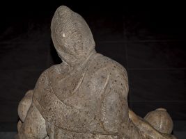 Scolpita in un enorme blocco di marmo bianco di Carrara, l’opera marmorea realizzata da Michelangelo tra il 1547 e il 1555 circa, è una delle tre realizzate dal grande artista. A differenza delle altre due – quella giovanile vaticana e la successiva “Rondanini” – il corpo del Cristo è sorretto non solo da Maria ma anche da Maddalena e dall’anziano Nicodemo, a cui Michelangelo ha dato il proprio volto. Particolare confermato anche dai due biografi coevi all’artista, Giorgio Vasari e Ascanio Condivi, grazie a cui sappiamo che la scultura era destinata a un altare di una chiesa romana, ai cui piedi l’artista avrebbe voluto essere sepolto.