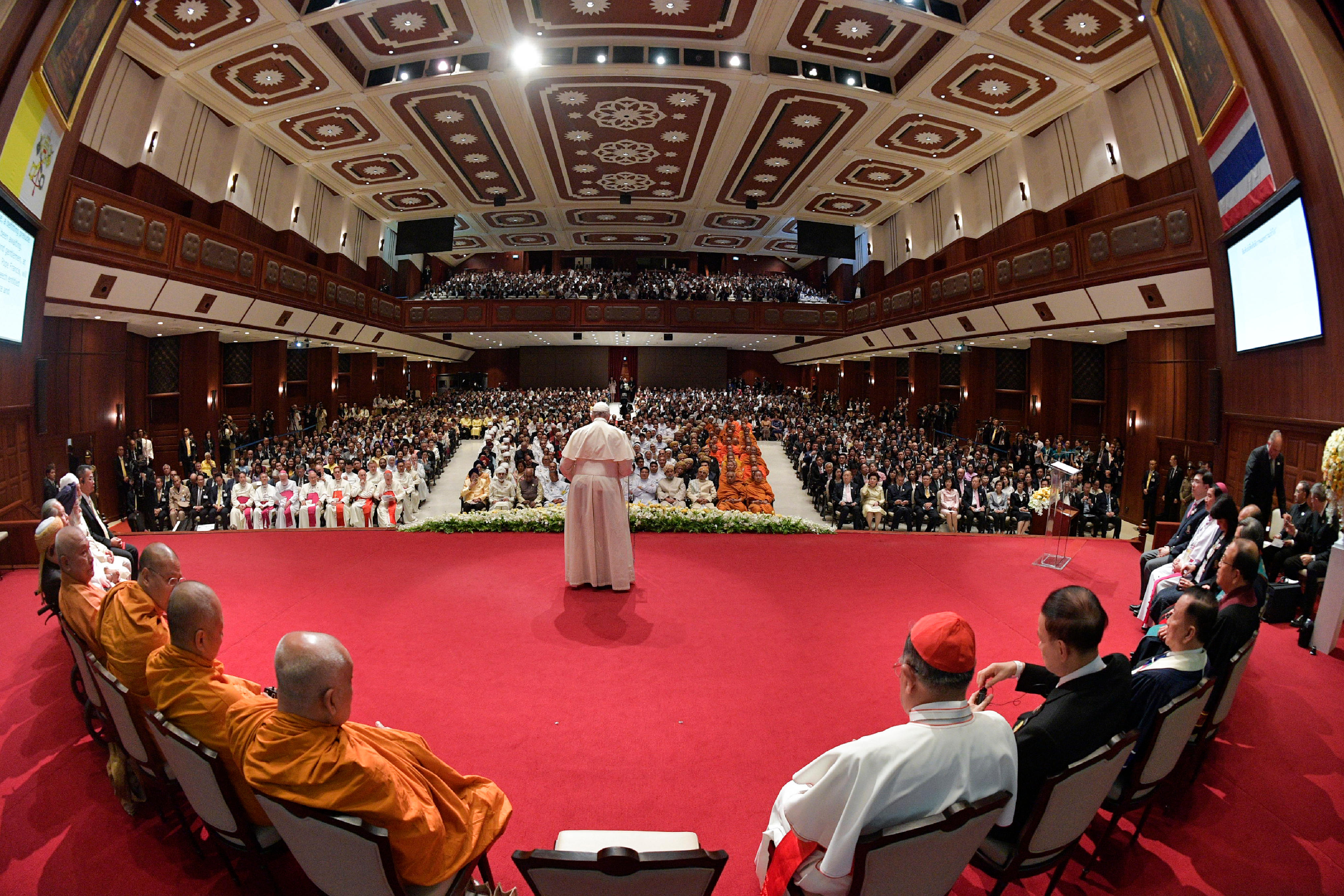 “Porre fine” al “flagello” della tratta e alle “tante schiavitù che persistono ai nostri giorni”. Anche durante la seconda giornata del viaggio in Thailandia, come era già accaduto ieri fin dal suo primo discorso, il Papa è tornato a denunciare con forza una delle piaghe del “popolo del sorriso”, come lo ha definito. Incontrando i leader cristiani e di altre religioni, nella Chulalongkorn University di Bangkok, Francesco ha ricordato che “centoventidue anni fa, nel 1897, il re Chulalongkorn, da cui prende il nome questa prima Università, visitò Roma ed ebbe un’udienza con il Papa Leone XIII: era la prima volta che un capo di Stato non cristiano veniva ricevuto in Vaticano”. “Il ricordo di quell’importante incontro, come pure del suo periodo di regno, caratterizzato tra i tanti meriti dall’abolizione della schiavitù, ci interpella e ci incoraggia ad assumere un protagonismo deciso sulla via del dialogo e della mutua comprensione”, l’invito del Papa: “E questo si dovrebbe fare in uno spirito di coinvolgimento fraterno, che aiuti a porre fine a tante schiavitù che persistono ai nostri giorni, penso specialmente al flagello del traffico e della tratta di persone”. “La necessità di riconoscimento e di stima reciproca, così come la cooperazione tra le religioni, è ancora più urgente per l’umanità contemporanea”, la tesi di Francesco: “il mondo di oggi si trova di fronte a problematiche complesse, come la globalizzazione economico-finanziaria e le sue gravi conseguenze nello sviluppo delle società locali; i rapidi progressi – che apparentemente promuovono un mondo migliore – convivono con la tragica persistenza di conflitti civili: conflitti sui migranti, sui rifugiati, per le carestie e conflitti bellici; e convivono con il degrado e la distruzione della nostra casa comune”. “Tutte queste situazioni ci mettono in guardia e ci ricordano che nessuna regione né settore della nostra famiglia umana può pensarsi o realizzarsi estranea o immune rispetto alle altre”, l’appello al dialogo interreligioso: “Sono tutte situazioni che, a loro volta, esigono che ci avventuriamo ad intessere nuovi modi di costruire la storia presente senza dover denigrare o mancare di rispetto agli altri”.