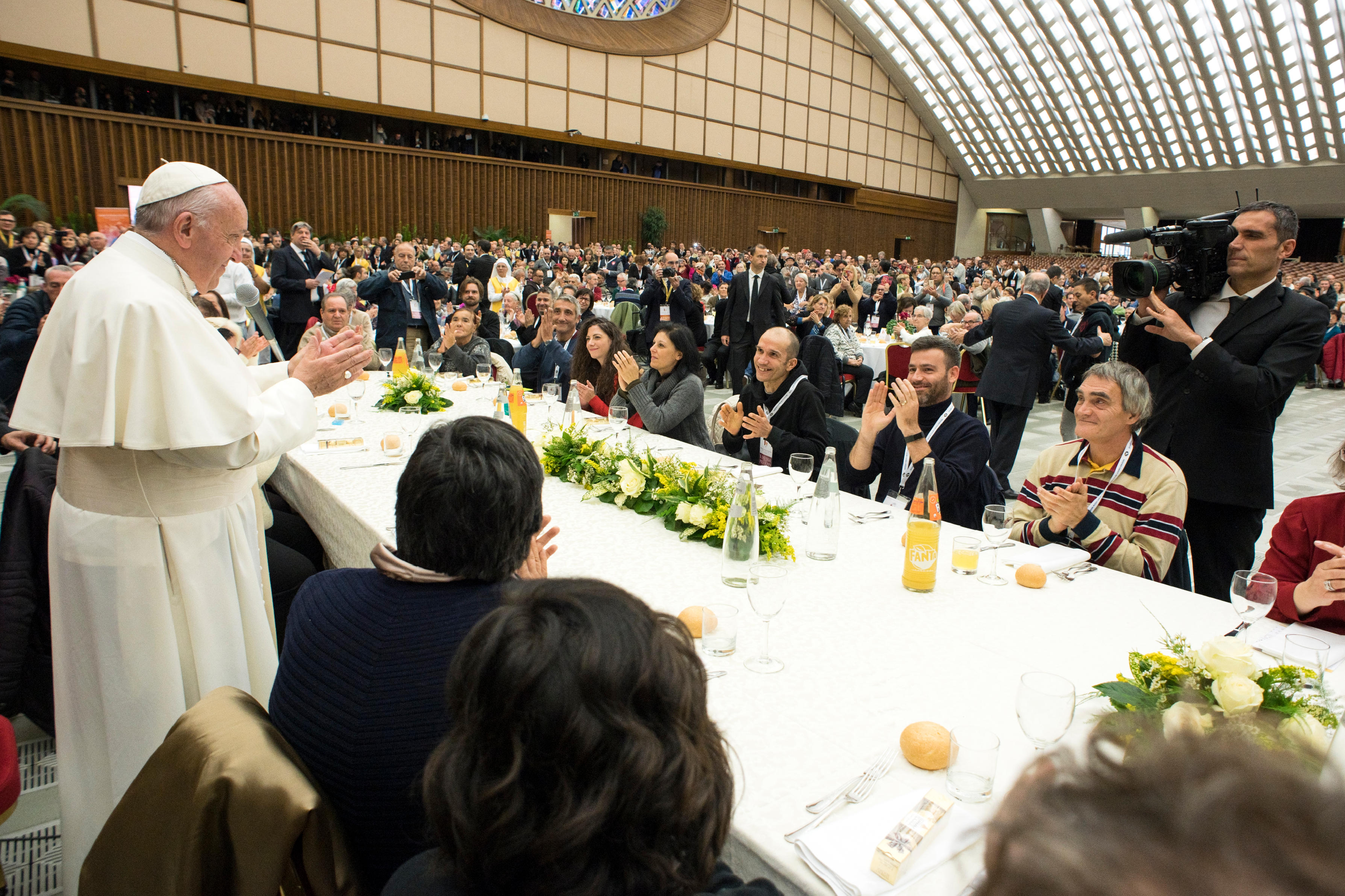 Domenica 17 novembre, alle 10 nella basilica di San Pietro, Papa Francesco celebrerà la messa in occasione della Giornata mondiale dei poveri a cui prenderanno parte numerose persone indigenti accompagnati da alcune associazioni di volontariato. Al termine della celebrazione, come ormai è tradizione, l’Aula Paolo VI in Vaticano ospiterà il pranzo con Papa Francesco e 1.500 poveri. L’aula nella quale si svolgono abitualmente le udienze, sarà “allestita per l’occasione a grande sala da pranzo – spiega un comunicato del Pontificio Consiglio per la Promozione della nuova evangelizzazione – con 150 tavoli, per un pranzo festivo in loro onore”. I 1.500 poveri provengono da Roma, dalle diocesi del Lazio e da altre diocesi d’Italia. Al termine del pranzo, che sarà offerto da Roma Cares, a tutti i partecipanti verranno offerti dei doni: alcune confezioni di pasta, donate da La Molisana e di olio, donato dalla Coldiretti. Contemporaneamente al Pranzo con i poveri in Vaticano, ogni parrocchia e realtà di volontariato che avrà aderito all’iniziativa, organizzata e promossa dal Pontificio Consiglio per la Promozione della nuova evangelizzazione, “offrirà, compatibilmente alle possibilità, lo stesso gesto di inclusione rappresentato da questo Pranzo”.