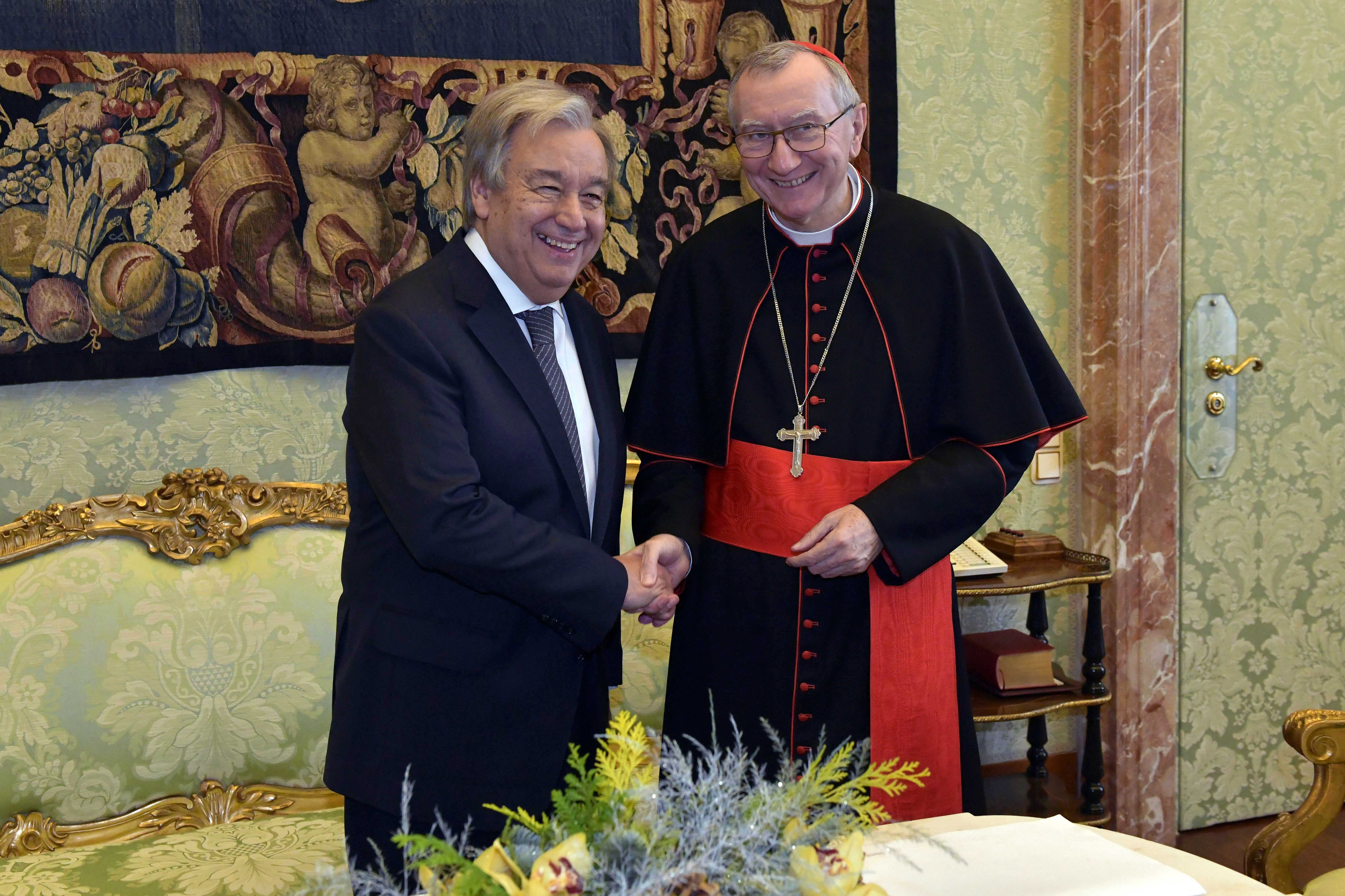 Nella mattinata di oggi, nel palazzo apostolico vaticano, il Papa ha ricevuto in udienza il segretario generale dell’Organizzazione delle Nazioni Unite, Antonio Guterres, che successivamente si è incontrato con il cardinale segretario di Stato, Pietro Parolin, il quale era accompagnato da mons. Paul Richard Gallagher, segretario per i Rapporti con gli Stati. A confermarlo è la Sala stampa della Santa Sede, precisando che l’incontro, “nella tradizione delle udienze concesse dai Pontefici ai vari Segretari Generali delle Nazioni Unite succedutisi nel tempo, si colloca in prossimità del 75° anniversario dell’Organizzazione”. “Nel corso dei cordiali colloqui – si legge nel comunicato – è stata espressa la considerazione della Santa Sede per l’impegno delle Nazioni Unite in favore della pace nel mondo. Ci si è poi soffermati sul processo di attuazione degli Obiettivi di Sviluppo Sostenibile e sulla crisi del multilateralismo, resa particolarmente evidente dalle difficoltà di gestire alcune problematiche attuali, quali le migrazioni e la tratta di persone, il cambiamento climatico e il disarmo”. Nel prosieguo della conversazione, infine, “sono state trattate anche alcune situazioni di conflitto, instabilità sociale e gravi emergenze umanitarie”.